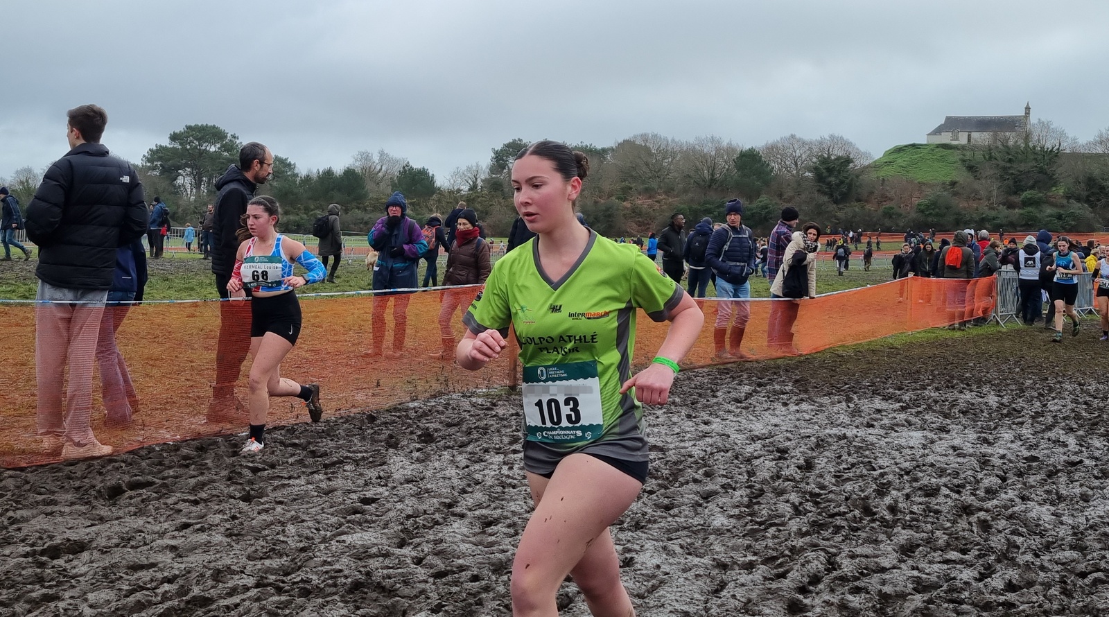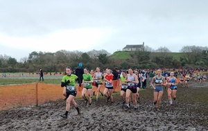 Pour cette 112ème édition du championnat de Bretagne de cross, le Val de Landrouet à Merdrignac a vu défiler plus de 2000 athlètes qui au fil des épreuves ont rendu le parcours très gras ; on aurait pu reprendre la chanson de Jane Birkin… ouh ! la gadoue, la gadoue ! Il fallait donc être très costaud pour pouvoir prétendre à la victoire ou aux places d'honneur. Nos athlètes qualifiés pour ce championnat ont rempli leur contrat avec une abnégation dans l'effort qui faisait plaisir à voir. Bravo à eux.