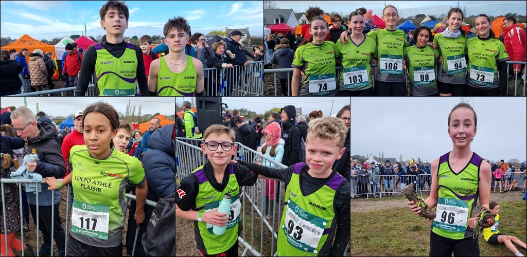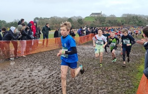 Première en lice à s'élancer, la course minime fille avec Chloé, Emma, Jeanne, Juliette et Jessica et très belle course d'équipe avec la 7ème place au classement général par équipe qui leur permet de se qualifier pour le championnat de Bretagne. Dans la catégorie minime garçon, Octave termine 24ème et se qualifie également pour le championnat de Bretagne tout comme Lucas 48ème. Pour 3 places, Bastien,51ème, ne sera pas du voyage à Merdrignac. En benjamine, Noémie termine 10ème (qualifiée) et Charline 62ème. Dans la catégorie poussine, l'équipe composée de Aélia(31ème), Charlie(64ème), Elya(74ème) et Nawel(75ème) termine à la 10ème place par équipe. Chez les poussins, Léandre termine 14ème, Julian 60ème et Noah 73ème. En cadet garçon, Anthony termine 50ème (qualifié) et son frère Médérick en junior finit 29ème (également qualifié).Seul représentant adulte, Kévin termine 102ème en senior (à 10 places de la qualification).